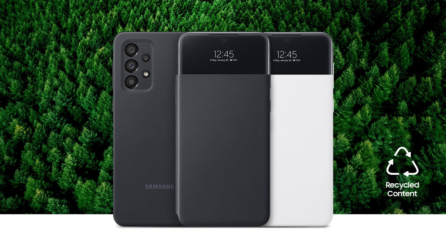 Чохол Smart S View Wallet Cover виготовлено з переробленої сировини, а його упаковку замінили на картонну, щоб уникнути використання пластику, який завдає значної шкоди навколишньому середовищу.