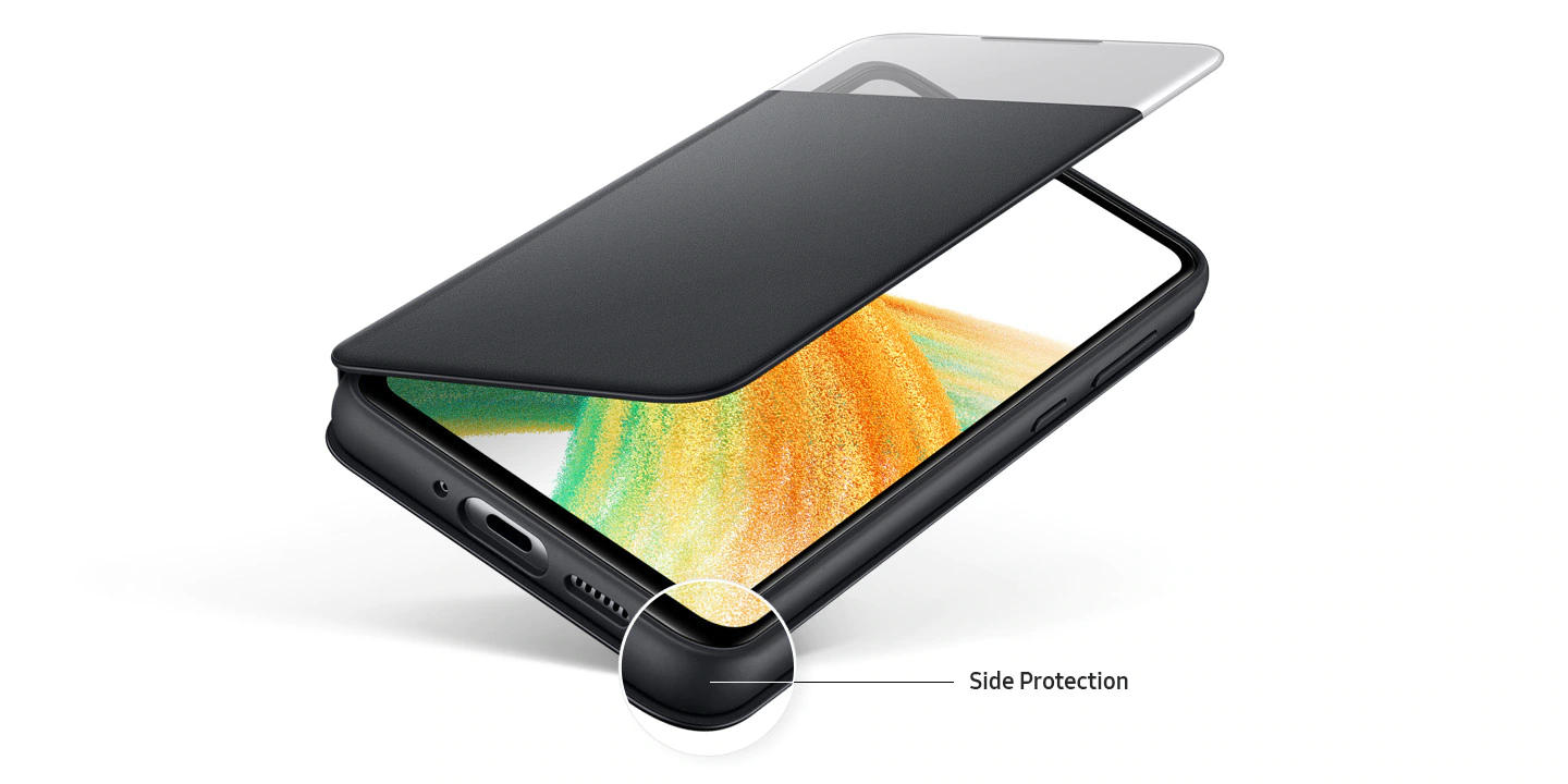Чохол Smart S View Wallet Cover гарантує надійний всебічний захист Galaxy A33 завдяки своїй конструкції. Він оберігає смартфон з усіх боків, дозволяючи уникнути різних механічних пошкоджень, включно з пилом та мікроподряпинами.