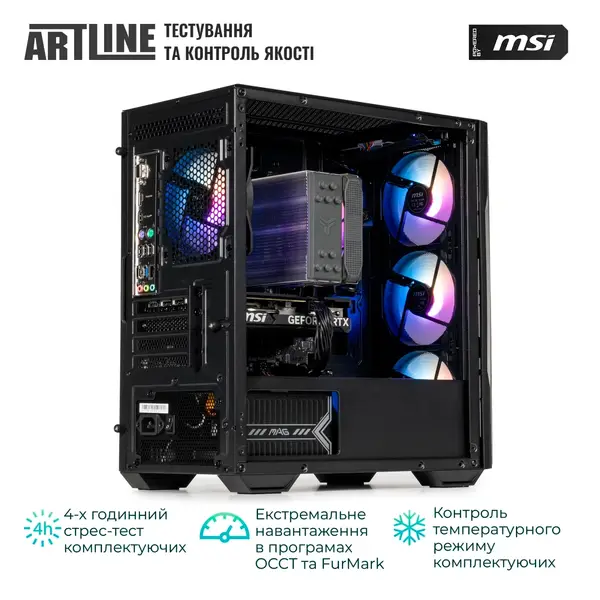 ARTLINE Gaming DRGN – це не лише міць, а й стиль. З баштовим процесорним кулером з підсвічуванням ARGB та вентиляторами з підсвічуванням RGB, цей комп'ютер готовий надати вашому робочому простору або геймерській кімнаті унікального вигляду.