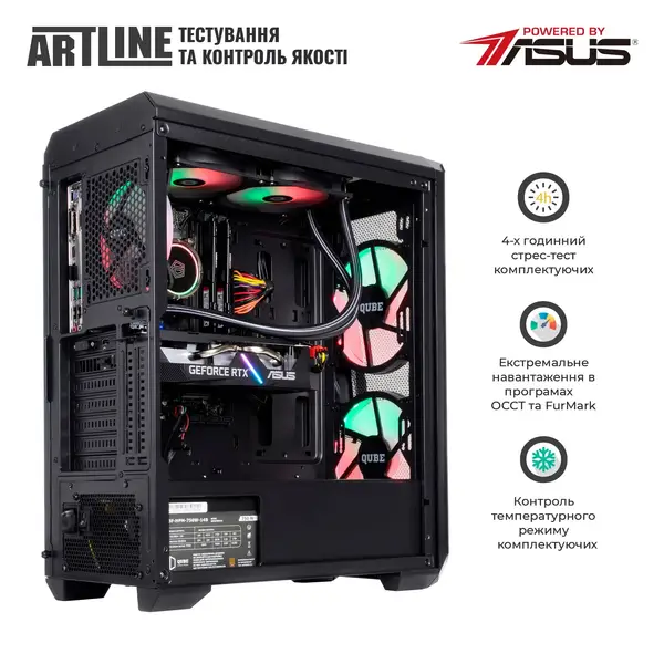 Корпус QUBE WIZARD з RGB-підсвічуванням та системою водяного охолодження процесора створюють ефектний та функціональний дизайн. Він також включає блок живлення потужністю 750 Вт 80+ Bronze для надійної та ефективної роботи.
