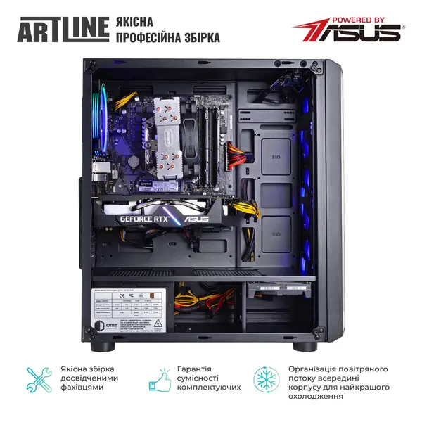 ARTLINE Gaming X75v41 оснащений графічним адаптером GeForce RTX 3060 12 ГБ, збудованим на мікроархітектурі Ampere, з ультрашвидкою пам'яттю типу GDDR6. Відеокарта підтримує технологію трасування променів та згладжування, які перетворюють та покращують ігровий процес та роботу додатків для створення контенту.