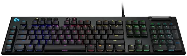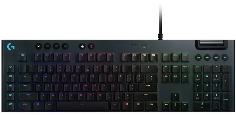Logitech G815 – это совершенная ультратонкая клавиатура, воплотившая в себе новейшие игровые технологии. Она оснащена специальными G-клавишами и RGB-подсветкой по технологии LIGHTSYNC, а все параметры ее работы можно настроить. Чтобы удовлетворить запросы самых требовательных игроков, разработчики оснастили ее плоскими механическими переключателями GL, доступными в нескольких разновидностях: с линейным ходом, с тактильным откликом или щелчком при срабатывании.